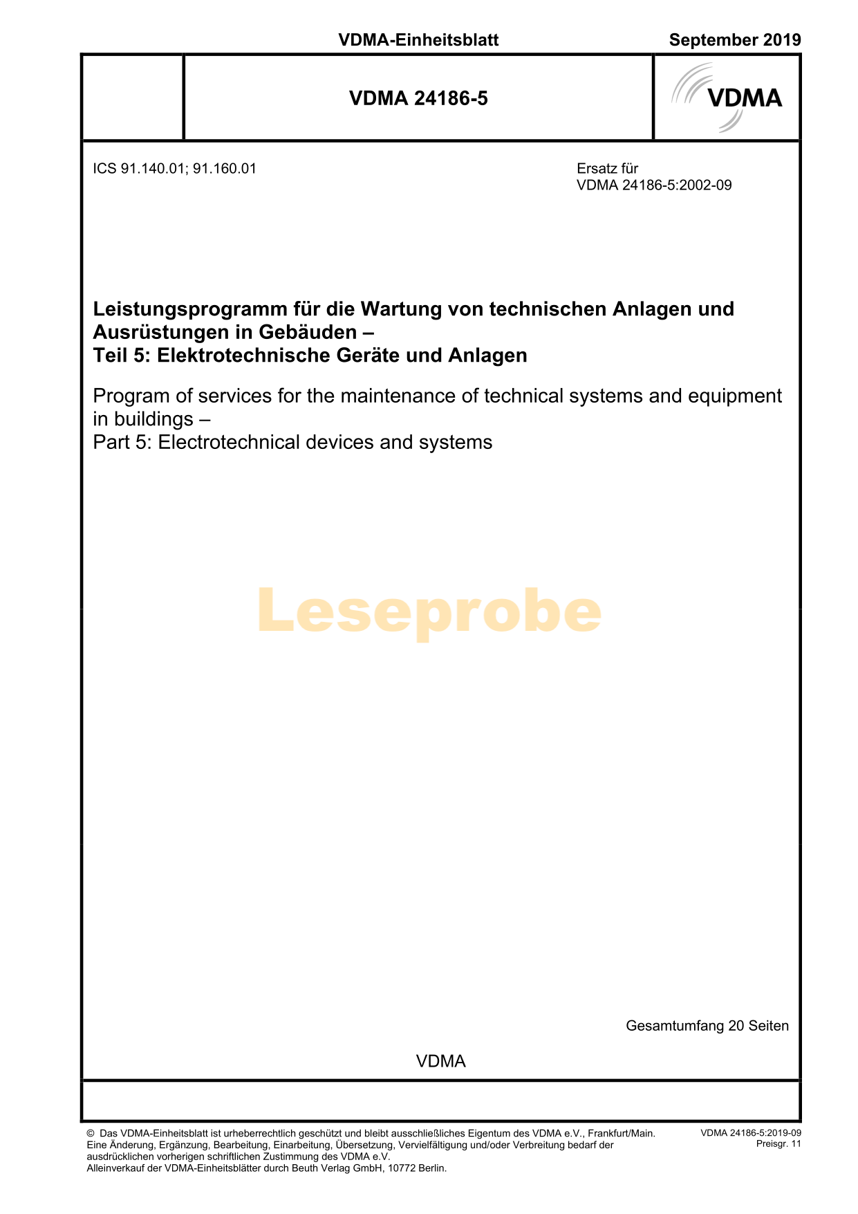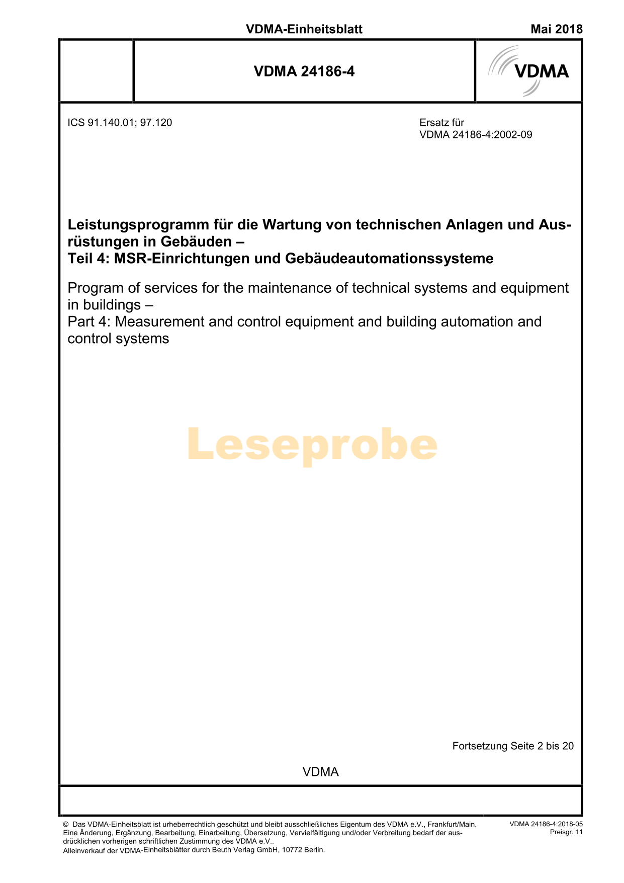 Leseproben VDMA-Einheitsblatt - lizensiert für (VDMA Verlag) bis 01.01.2050
